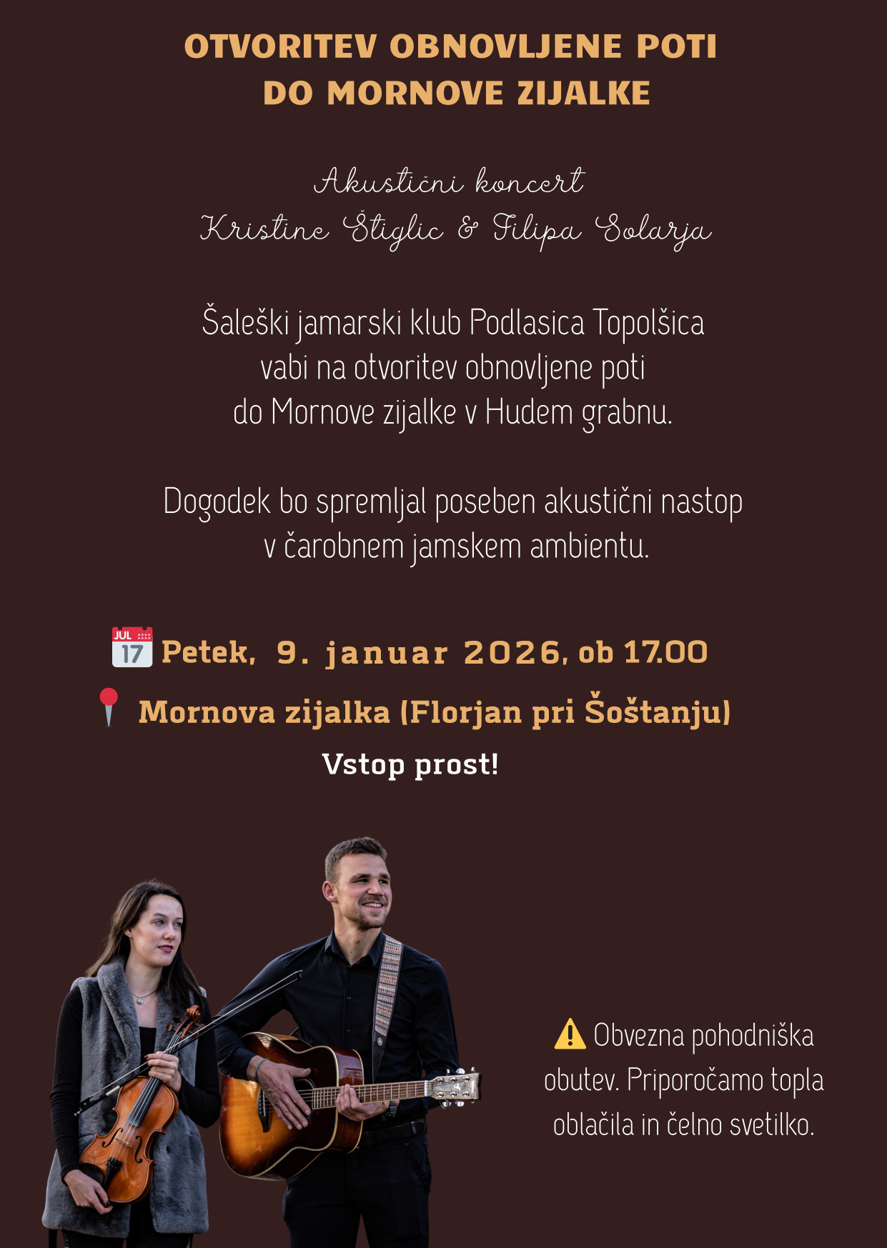 Za glasbeno popestritev otvoritve bo poskrbel akustični koncert Kristine Štiglic in Filipa Solarja.