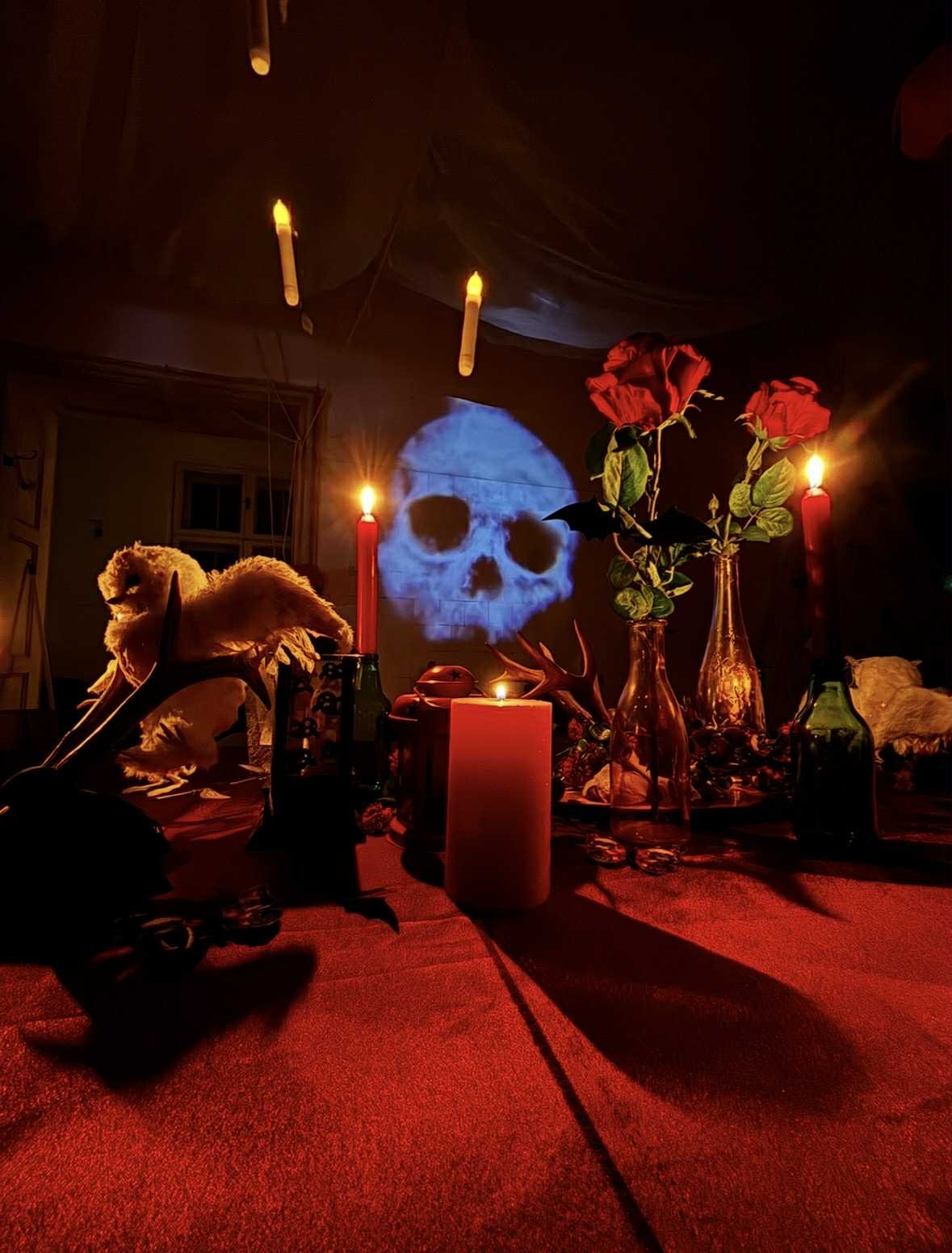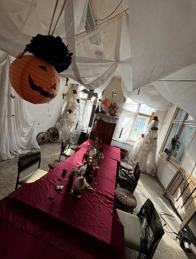 Po zamisli Nika Oremuž so se zapuščeni prostori nekdanje kirurgije preobrazili v čarobno, skrivnostno prizorišče, prežeto z domišljijo in duhom Noči čarovnic.