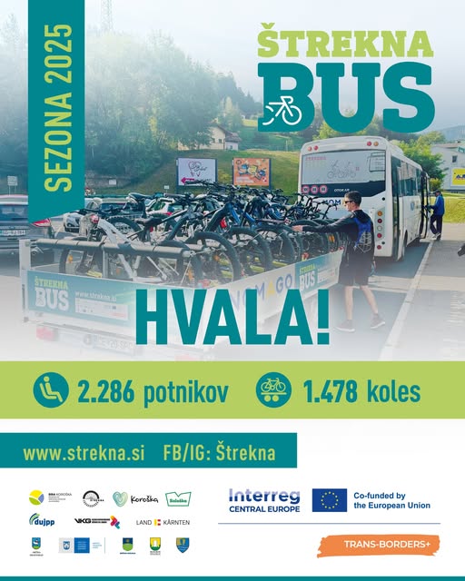 Rezultati Štrekna busa govorijo sami zase – Štrekna bus je letos prepeljal kar 2.286 potnikov in 1.478 koles, kar predstavlja najuspešnejšo sezono od začetka izvajanja.