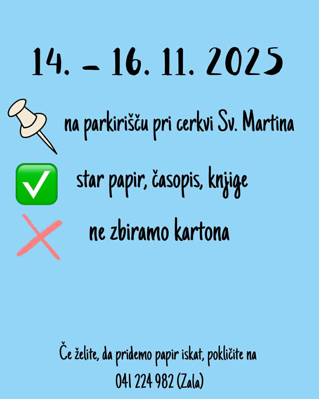Imate doma kaj starega papirja? Če je odgovor pritrdilen, imate danes in jutri idealno priložnost, da ga prinesete v keson pri cerkvi sv. Martina. Skupaj lahko naredimo veliko dobrega