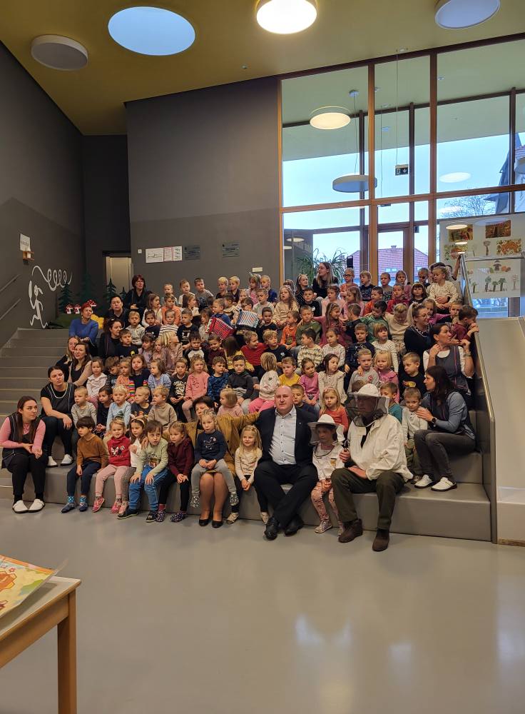 Otrokom v enoti Biba so se pri zajtrku pridružili tudi župan Občine Šoštanj Boris Goličnik, ravnateljica Milena Brusnjak in člana Čebelarske družine Ravne-Šoštanj.