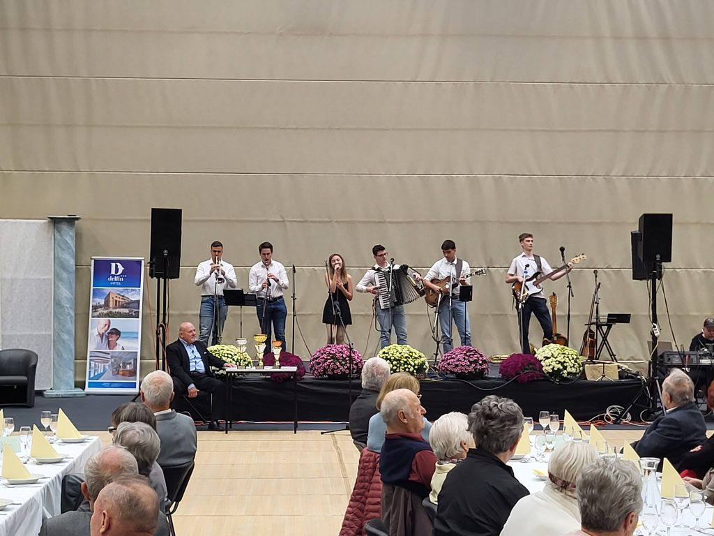 Upokojence in pare – letos je več kot 70 parov jubilantov – so nagovorili predsednik Šaleške pokrajinske zveze DU Franc Vedenik in župani vseh treh šaleških občin – Peter Dermol, Boris Goličnik in Janko Kopušar.