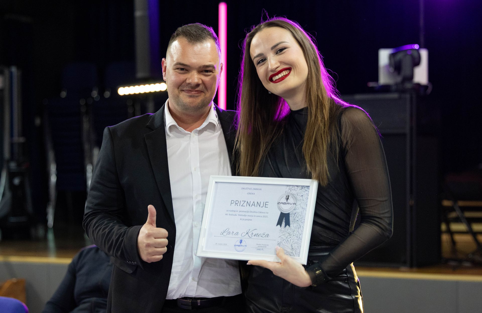Na občnem zboru so podelili tudi zahvalo članici Maji Štelcer za vestno in predano delo v društvu na področju oblikovanja grafičnih materialov in digitalne promocije. Prvo društveno priznanje pa je prejela Lara Krneža za nastop in promocijo društva na 44. festivalu Melodije morja in sonca 2025. Pripravili so bogat kulturno-umetniški program z gostoma Laro Krneža in Danijem Gregorcem, vse prisotne pa je pozdravil tudi župan Boris Goličnik, ki je društvo zaželel delovnega elana tudi v letošnjem letu.