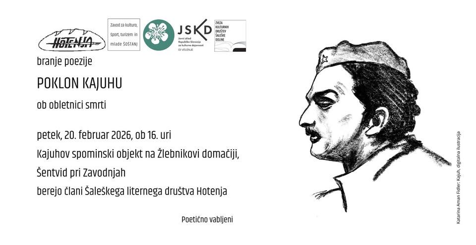 Jutri, 20. februarja, ob 16. uri bodo člani šaleškega literarnega društva Hotenja, pri spominskem objektu na Žlebnikovi domačiji v Zavodnjah, prebirali Kajuhovo poezijo.