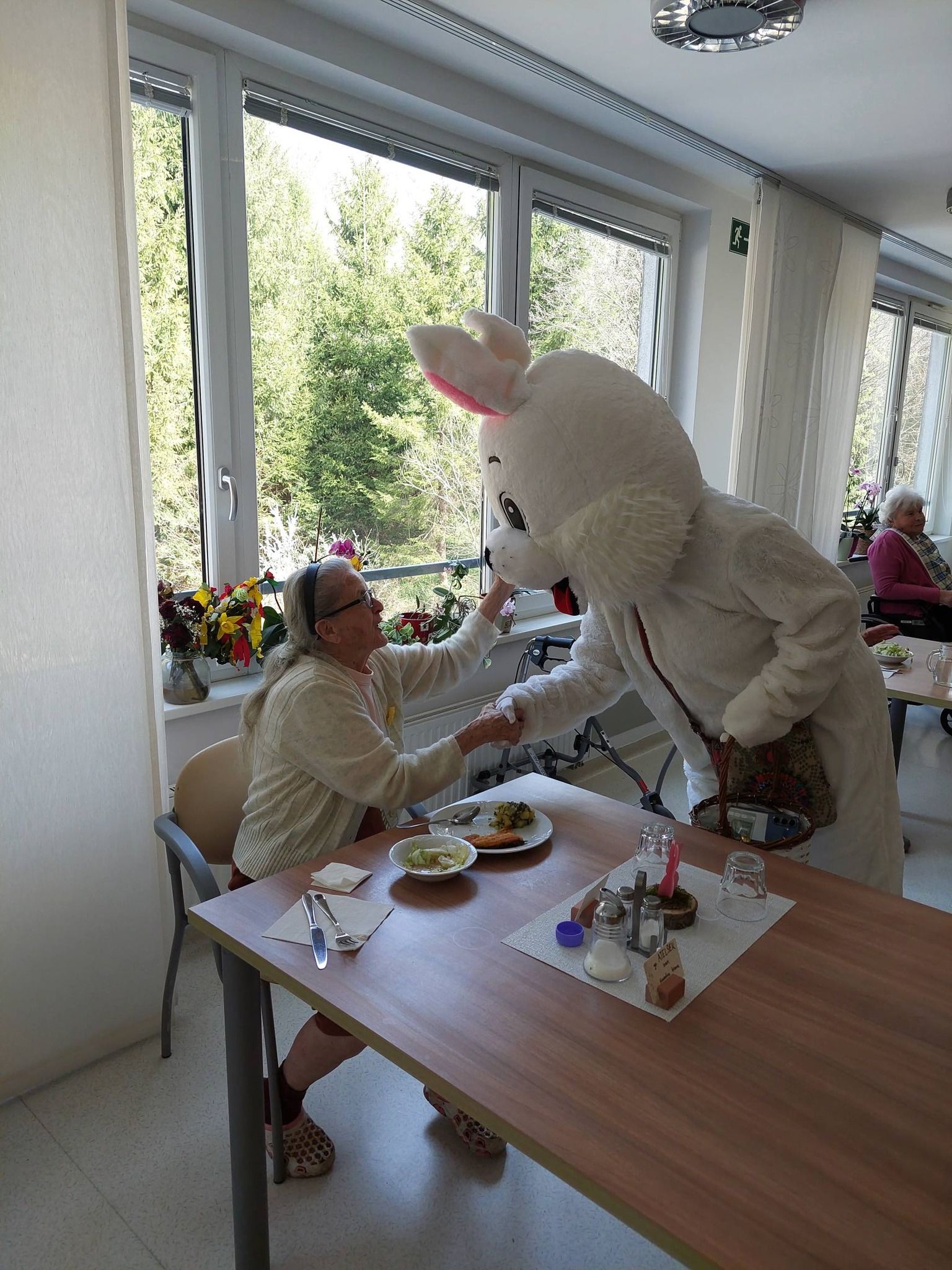 Svojo pot sta zajčka nadaljevala še v DEOS Center starejših Zimzelen, kjer sta obiskala prav vse oddelke. Tudi tam sta bila deležna toplega sprejema, saj sta med stanovalce prinesla nasmeh, toplino in praznično vzdušje.