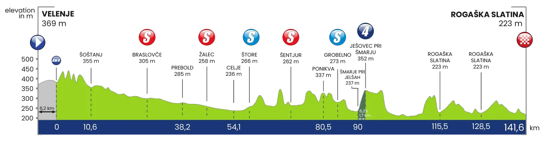 1. etapa: Velenje - Rogaška Slatina (141,6 km)
